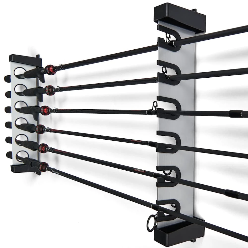 The Abu Garcia® horizontal 6-rod rack saves space while neatly and securely storing up to 6 complete rod and reel combos. Ideal for the shop, garage or boat dock.