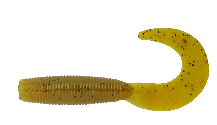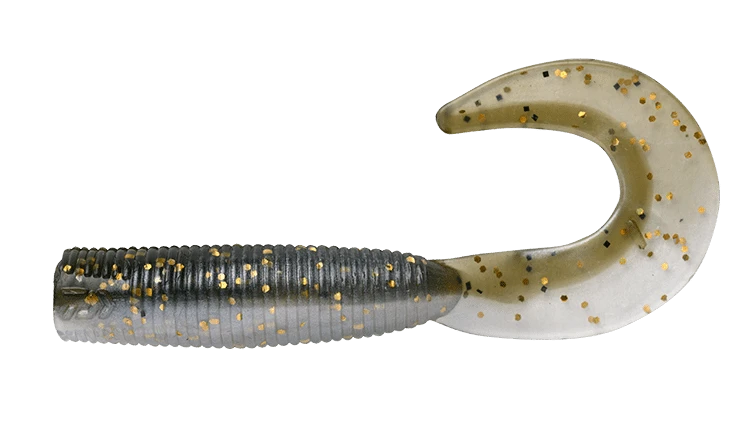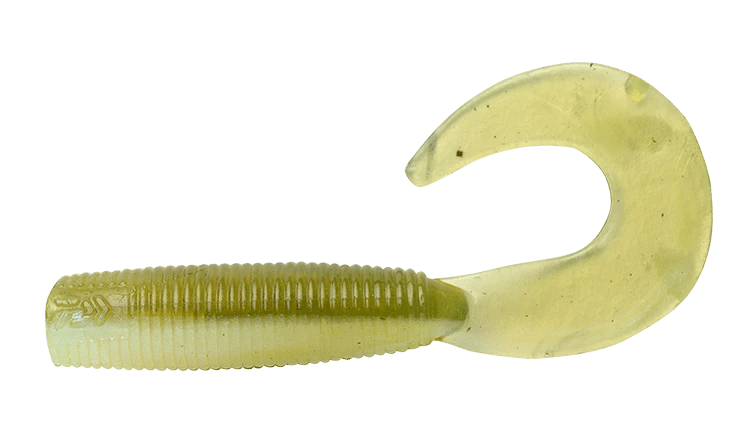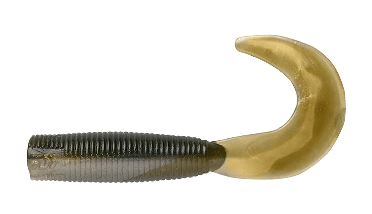 The 2.5” Grub features rigging lines top and bottom for those who prefer to rig tail up or down, and also features a handy DVEC logo printing on the side indicating a recommended trimming if you wish to use a slightly smaller profile bait in highly pressured situations.