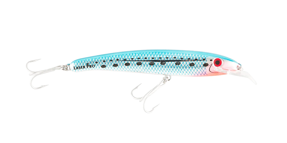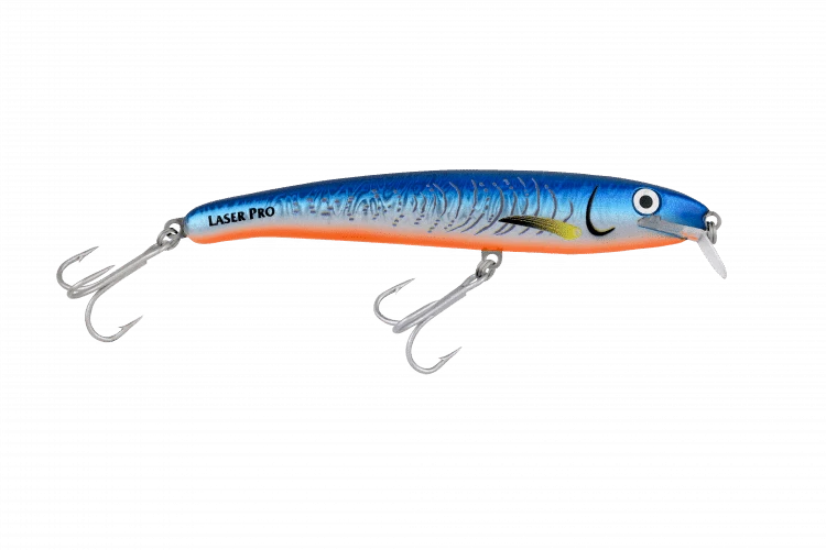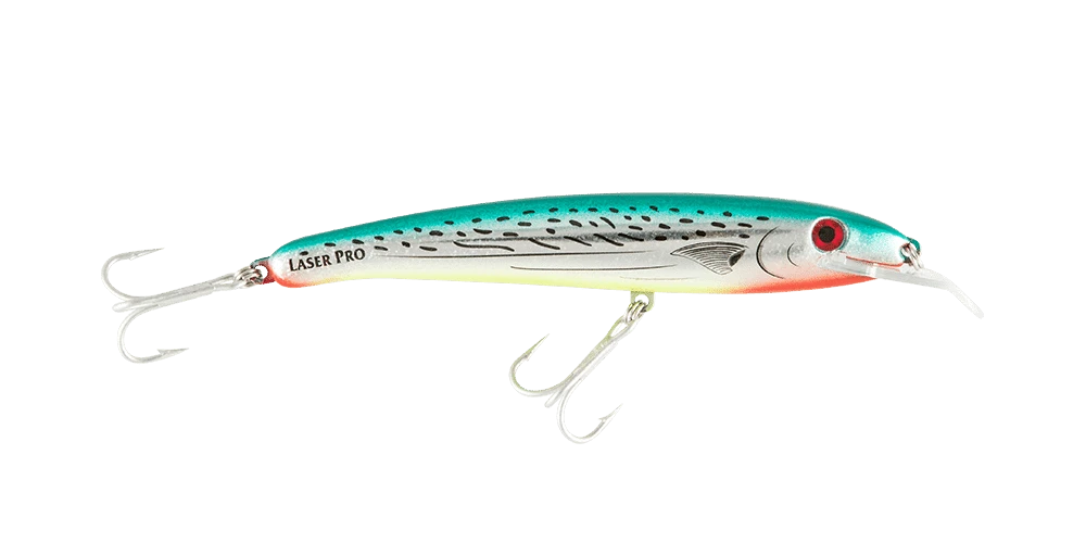 A great bluewater trolling lure, the Laser Pro 160 can be trolled over a wide speed band, however its optimum speed for trolling for pelagics is around 6.5 knots. Troll lures at distances ranging from 10-50 metres from the boat. About 25 metres is normal. Troll more than one lure at once to increase your chances, and emulate a school of fish. When trolling for toothy pelagics, such as mackerel, remember to use a Halco Snap or Supa Snap Trace.