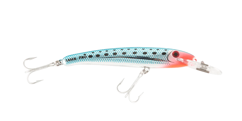 The lure is a massive 220mm long and weighs a substantial 180 grams and its slender profile casts like a bullet into the strongest breezes. It has been designed to run straight and true several metres below the surface in the roughest of sea conditions. The streamlined design allows for high operating speeds and maximum hook exposure, so critical in lure design.