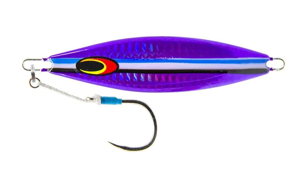 Centre Balanced Flash Fall jig rigged with super strong tail assist hook. It is designed to flutter and flash on the drop to mimic a wounded baitfish. Ideal for big tuna and all pelagics, the jig can be fished out of the packet using the fitted assist hook with confidence on even the biggest fish.