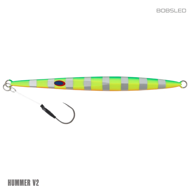 Hummer V2 is a tail weighted jig thus enabling it to get to the depths at speed without too much of a spiralling action. Ideally suited for fast current situations where you want your jig in the strike zone faster.