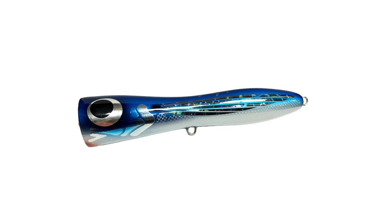 The TP Kustom Jaime is a long popper with an elongated design and a large cup face. this design allows for super long casts into the zone creating a huge commotion and drawing the attention of all nearby fish.